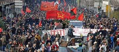 GENOVA - Migliaia di persone, precedute da uno striscione con la scritta "La storia siamo noi", hanno partecipato al corteo organizzato a Genova a sei anni dal G8 del luglio 2001. I manifestanti hanno sfilato pacificamente per le vie della città e nel giro di un paio d'ore hanno raggiunto piazza de Ferrari, nel centro, all'urlo "libertà, libertà". Qui la marcia, organizzata per chiedere la costituzione di una commissione d'inchiesta parlamentare sulle violenze e la gestione dell'ordine pubblico durante il G8 e per protestare contro le richieste dei pm a carico dei 25 manifestanti accusati di devastazione e saccheggio, si è fermata per il concerto finale.I manifestanti - 50 mila per gli organizzatori, 25-30 mila secondo le stime della questura - sono arrivati da tutt'Italia. Molti gli striscioni. L'Unione Studenti ne inalberava uno con scritto «Chi rompe paga, chi uccide no» e un altro con la scritta «Colpevoli di sognare». Il gruppo di «Sinistra Critica» ha ballato la musica degli Inti Illimani scandendo «El Pueblo unido...». Dietro di loro i gruppi della «Sinistra Europea» della «Sinistra Democratica» e di «Arcilesbica», di «Emergency» e della «Rete 28 Aprile - Cgil». A chiudere il corteo la Fiom, il Partito dei Comunisti Italiani e gli iscritti di Rifondazione Comunista. Su un cartello stradale, sfilate le migliaia di manifestanti, è rimasto incollato un foglio con la scritta: «Di nuovo a Genova per legittima difesa, verità e giustizia per Carlo, no a 25 capri espiatori, devastazione e saccheggio a chi?». In testa al corteo c'era anche Don Andrea Gallo, che in modo "colorito" ha incitato i manifestanti: « «Non reagite alle provocazioni di quei figli di p..., se non ci aiutiamo da noi non ci aiuta un c.... di nessuno, aff.... i profeti di sventura». Alcuni writer hanno lasciato sui muri qualche scritta contro la polizia: «Polizia assassina», «Chiesa e polizia, giustizia e vendetta», «Non giustizia ma vendetta», «Sbirri assassini», «Nessuna pietà per i cani», «La giustizia non è nei tribunali, vogliamo la vendetta per Carlo Giuliani» e «Brucia il Vaticano».